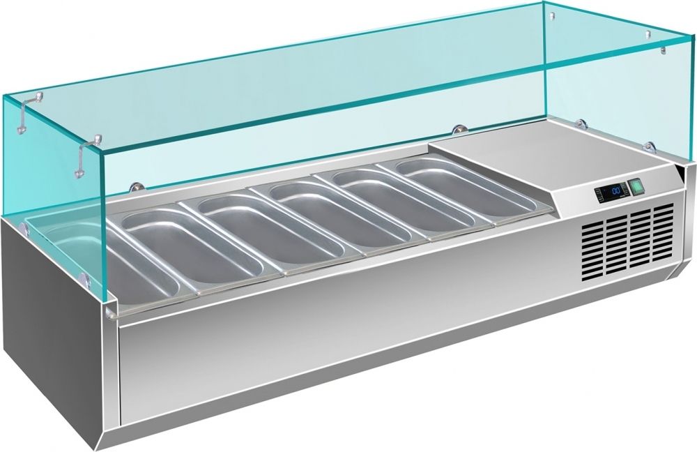 Витрина холодильная VRX1500/380 производства Viatto (Китай) современная гастрономированная холодильная витрина со статичным охлаждением камеры под гастроемкости GN 1/3 и GN 1/3, предназначена для хранения и презентации продуктов. Применяется для установки в магазинах, кафе, столовых и любых заведениях общепита.