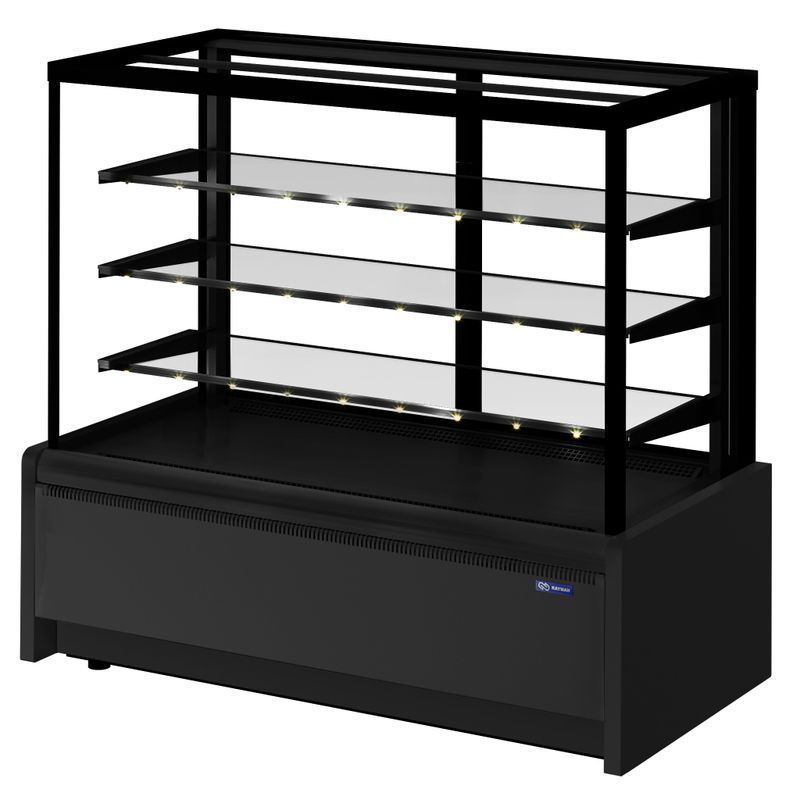 Витрина кондитерская K-ВК-1300 Квадро черный производства KAYMAN (Россия) - используются для охлаждения, временного хранения и демонстрации выпечки, тортов, пирожных и других десертов, не требующих сильного охлаждения. Применяется в пекарнях, столовых, кондитерских, магазинах и на предприятиях общественного питания любого формата.