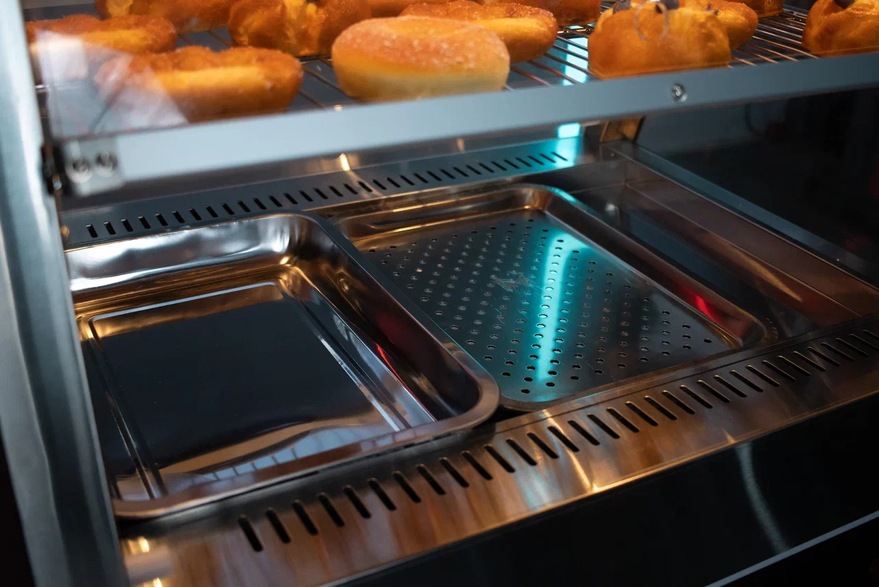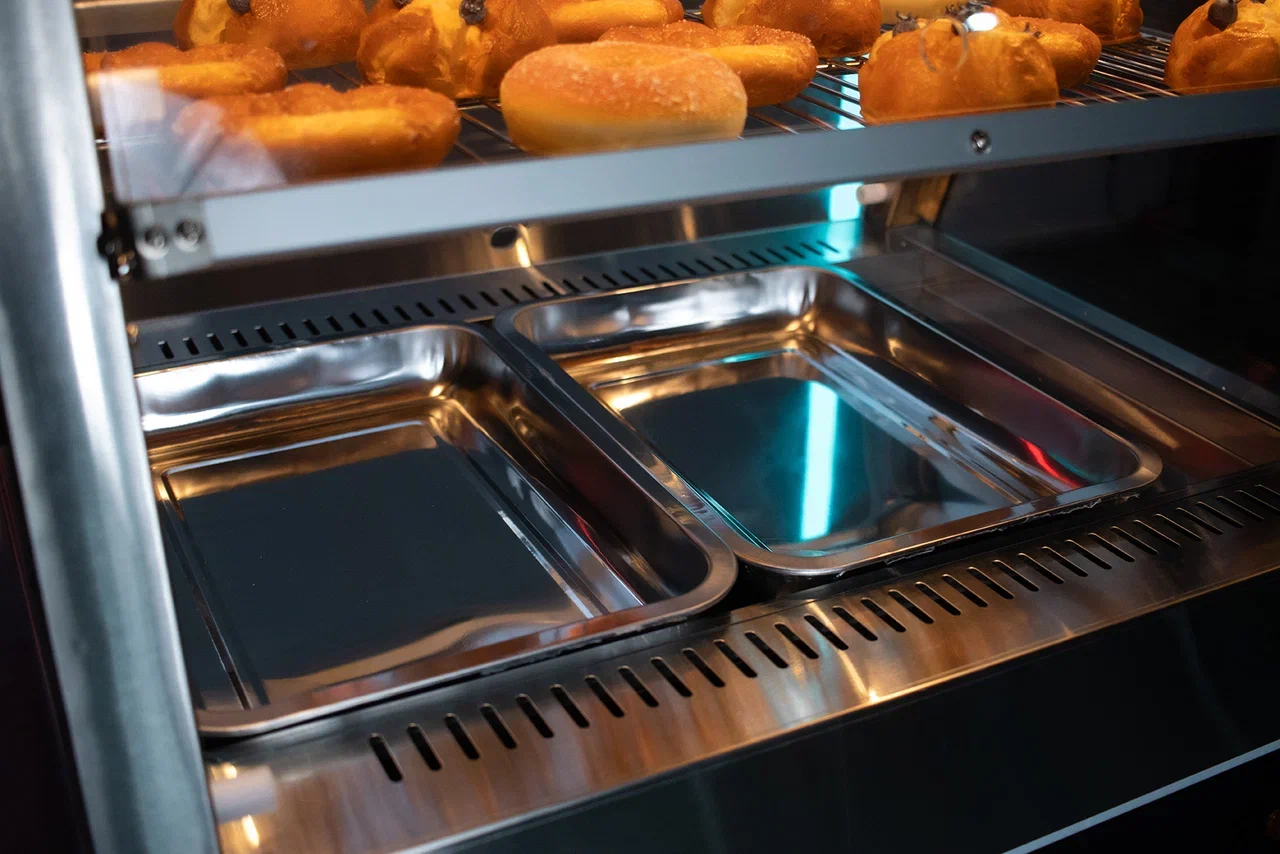 - 2 полки из нержавеющей стали - гигиеничная поверхность для размещения готовых блюд;