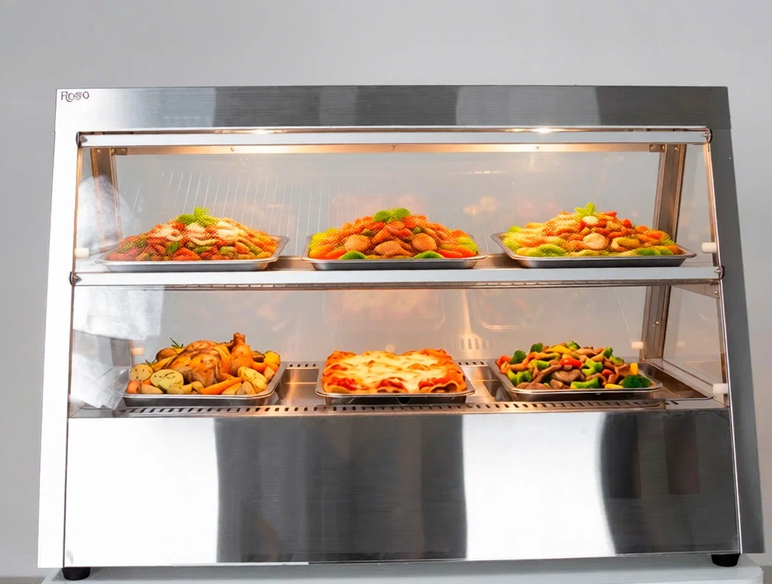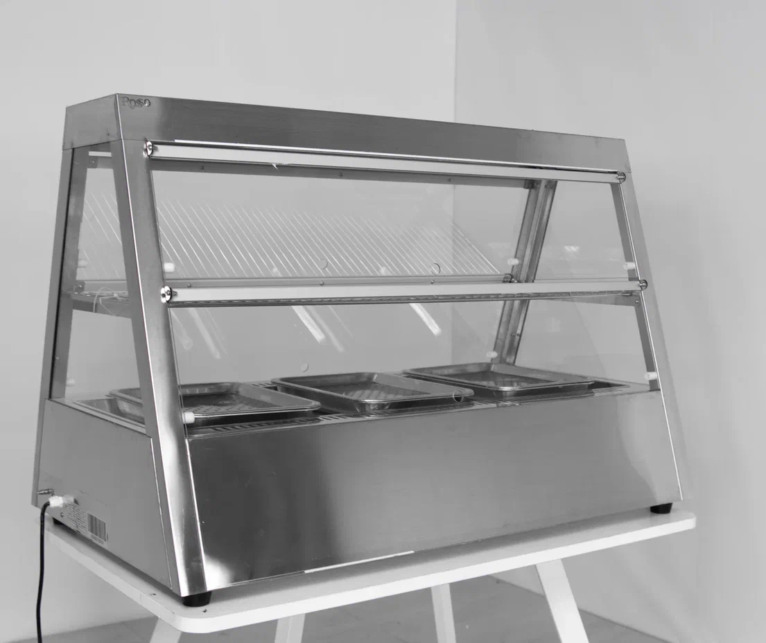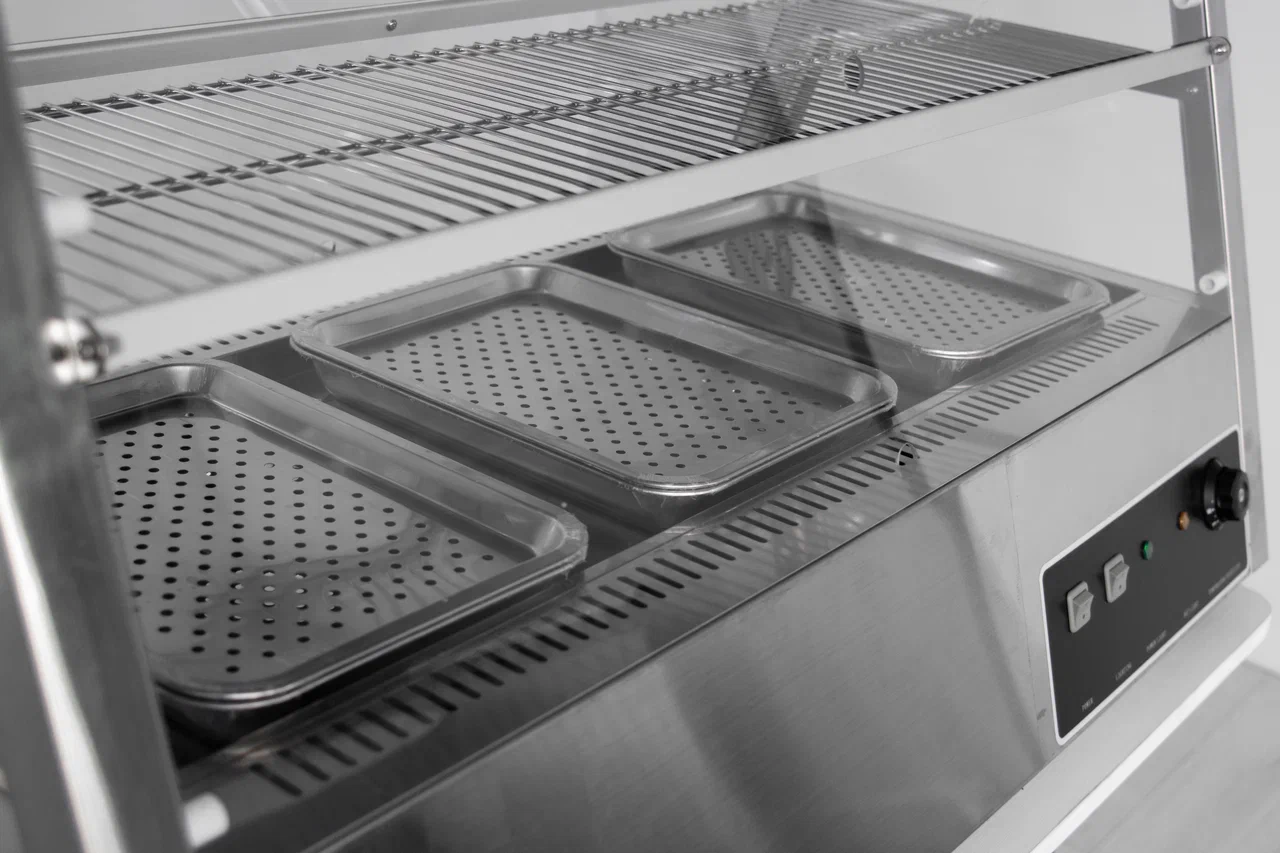 Купить витрину тепловую Rosso HW-2x4 - значит получить профессиональное настольное оборудование с двумя полками из нержавеющей стали, термостатом и декоративной подсветкой. Компактное размещение на прилавке позволяет эффективно использовать ограниченную площадь. Доставка по всей России, официальная гарантия производителя Rosso.