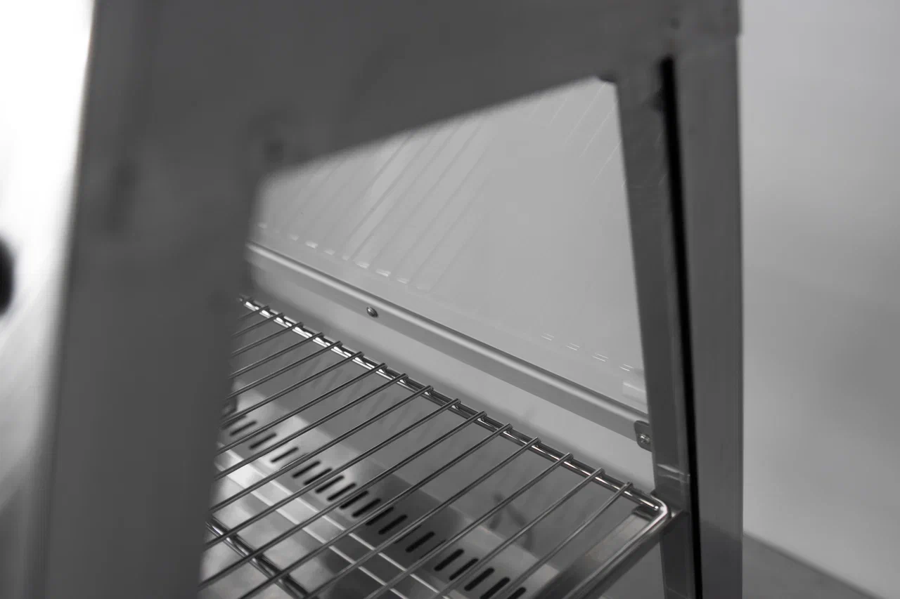 - 2 полки из нержавеющей стали - гигиеничная выкладка готовой продукции на двух уровнях;