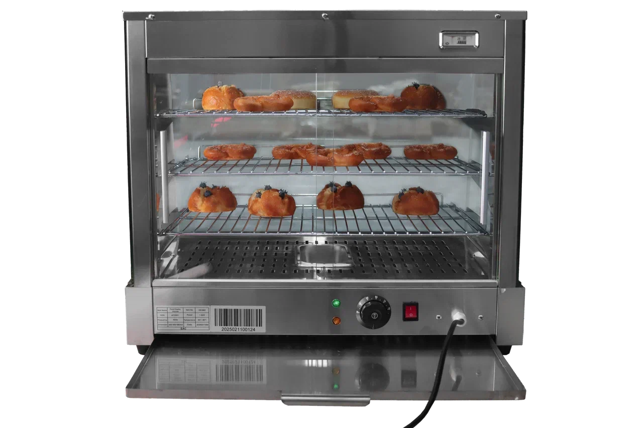Витрина тепловая HW-862 производства Rosso (Китай) - профессиональная тепловая витрина настольного типа для демонстрации и поддержания блюд в горячем состоянии. Модель оснащена 3 полками из нержавеющей стали, термостатом, декоративной лампой освещения и поворотным переключателем. Среднетемпературный режим обеспечивает оптимальные условия хранения широкого ассортимента готовых блюд.