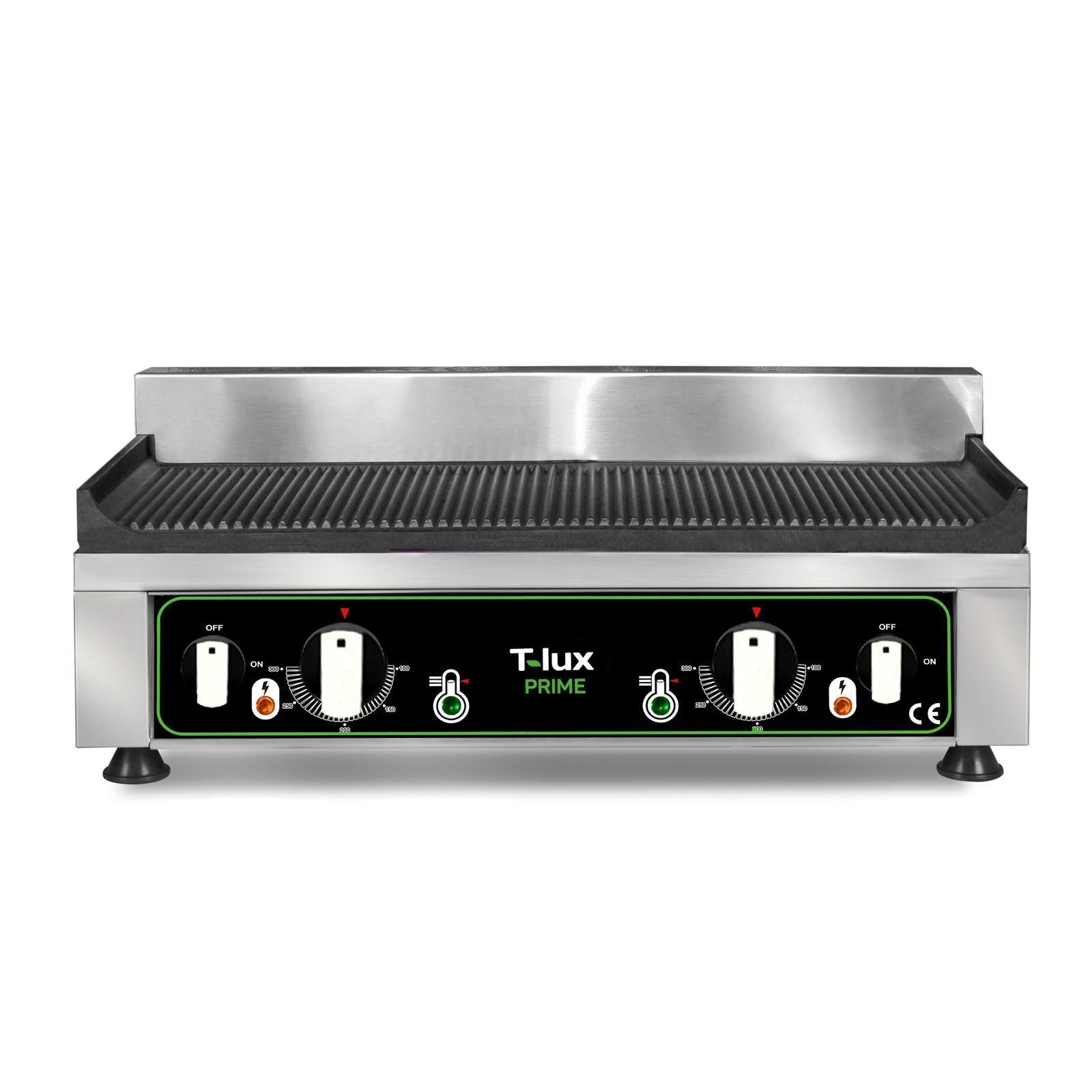 Поверхность жарочная Prime GP 5530 R производства T‑LUX (Турция) - специализированное тепловое оборудование для быстрой и качественной термической обработки продуктов в заведениях общественного питания. Подходит для обжарки и разогрева мяса, птицы, рыбы, котлет, сосисок, овощей, а также для приготовления стейков, гамбургеров и горячих сэндвичей.