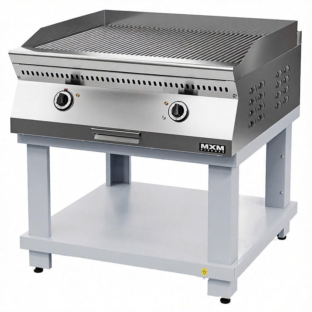 Жарочная поверхность MXM ПЖЭ90-П-02 производства Марихолодмаш (Россия) - профессиональная электрическая жарочная поверхность контактной обработки на подставке, предназначенная для приготовления пищи путём непосредственного контакта продукта с нагретой рифлёной поверхностью. Модель подходит для использования на предприятиях общественного питания как самостоятельный модуль или как часть технологической линии.