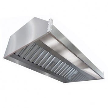 Оснащен съемными жироулавливающими фильтрами лабиринтного типа. Длина зонта варьируется в зависимости от площади места установки. Материалом изготовления служит нержавеющая сталь.